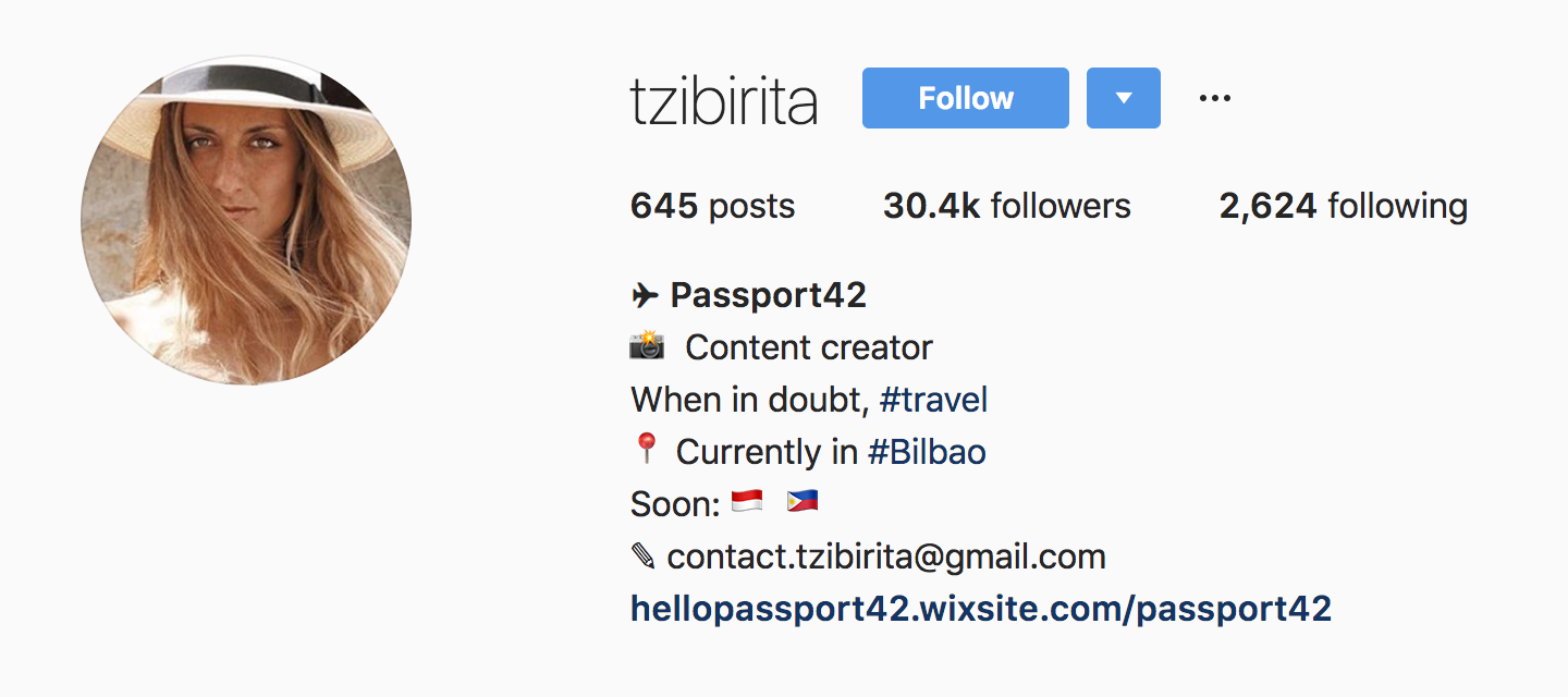 For instance, @tzibirita doesn't waste her bio space. She includes her email and website, and even adds a title.